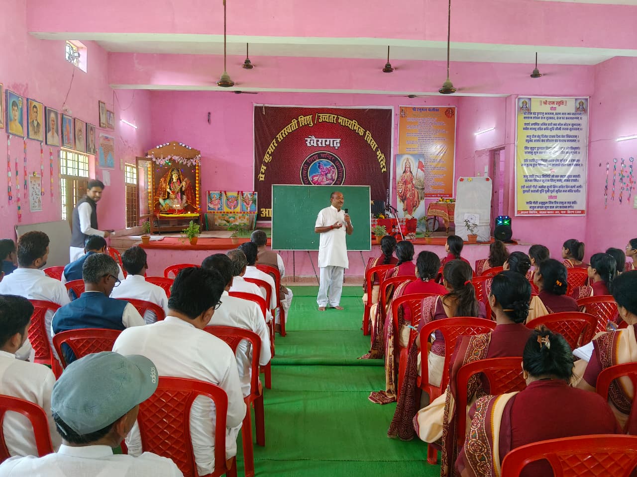 खैरागढ़. प्रेमकुमार सरस्वती उच्चतर माध्यमिक विद्यालय में विद्याभारती प्रादेशिक सचिव का आगमन — शैक्षिक गुणवत्ता व ‘सप्तशक्ति संगम’ पर हुआ मार्गदर्शन सत्र