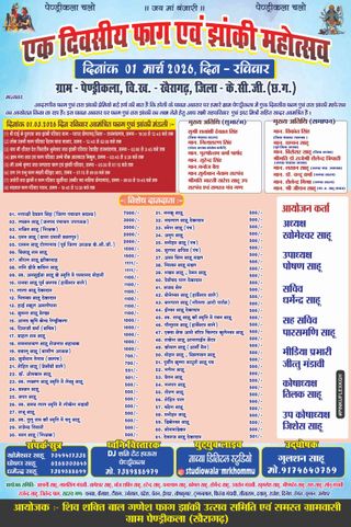 समिति के अध्यक्ष खोमेश्वर साहू, उपाध्यक्ष पोषण साहू, सचिव तिलक साहू, सह सचिव जिशेष साहू, कोषाध्यक्ष पारस साहू, मीडिया प्रभारी जीतू मंडावी और सह मीडिया प्रभारी मोहन साहू सहित समस्त ग्रामवासी आयोजन को सफल बनाने में सक्रिय रूप से जुटे हुए हैं।