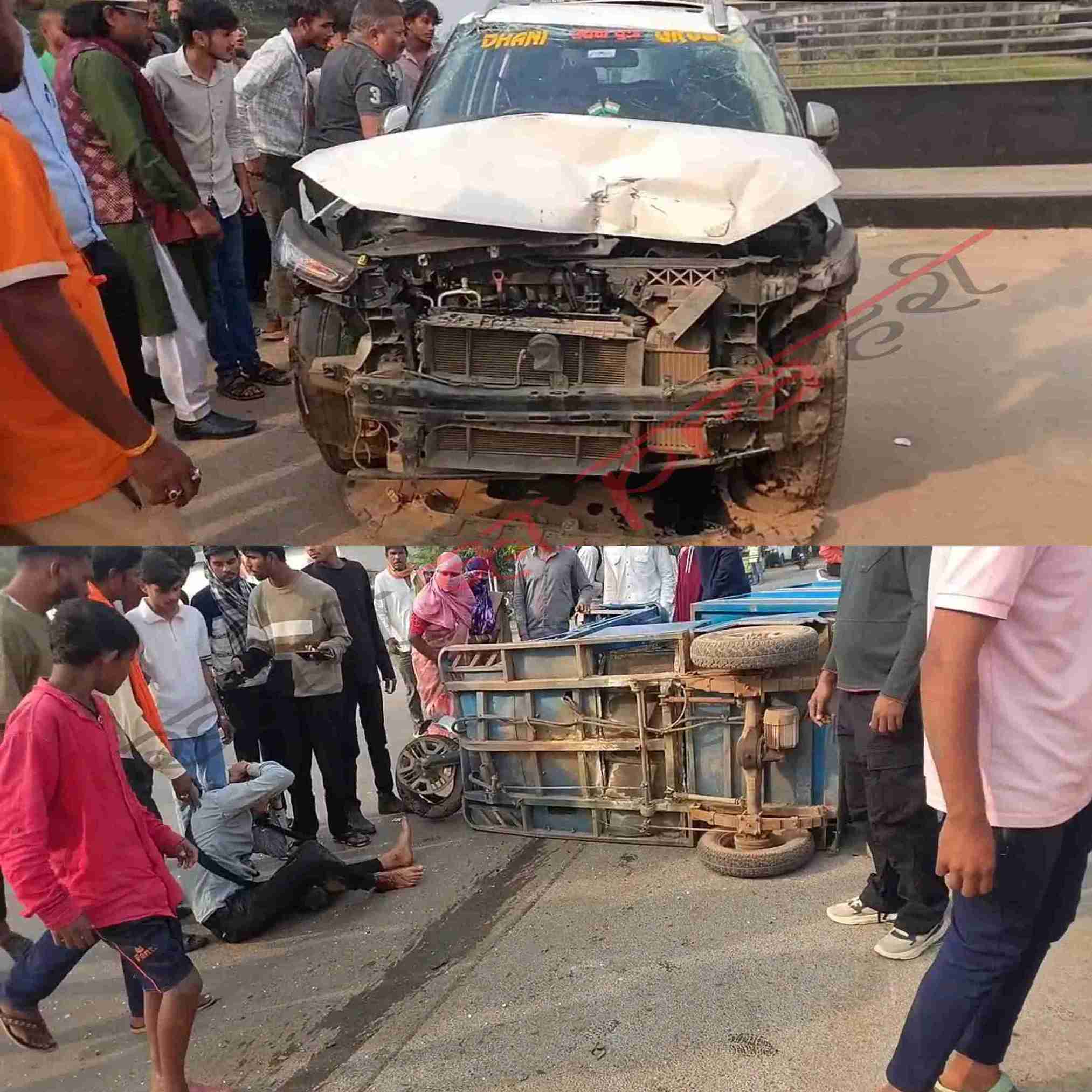 खैरागढ़. भीषण सड़क हादसा: वेन्यू कार और ई-रिक्शा की जोरदार टक्कर, ई-रिक्शा चालक गंभीर रूप से घायल — कार चालक फरार