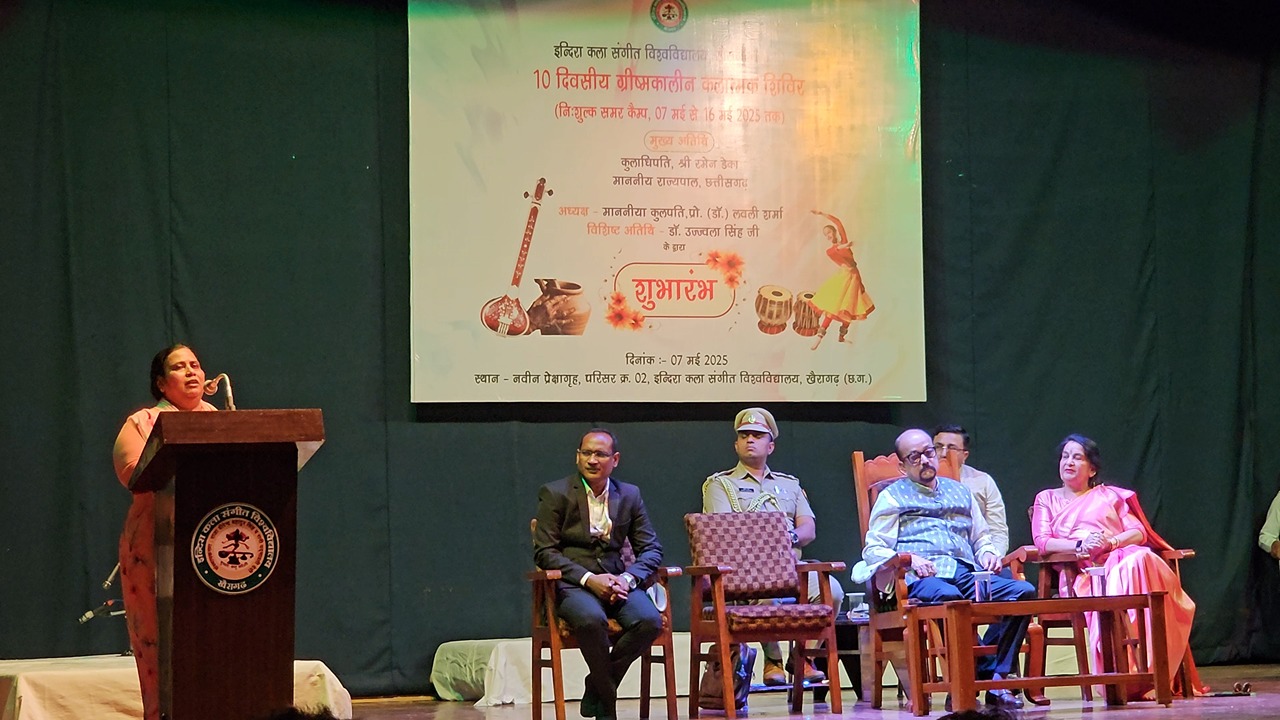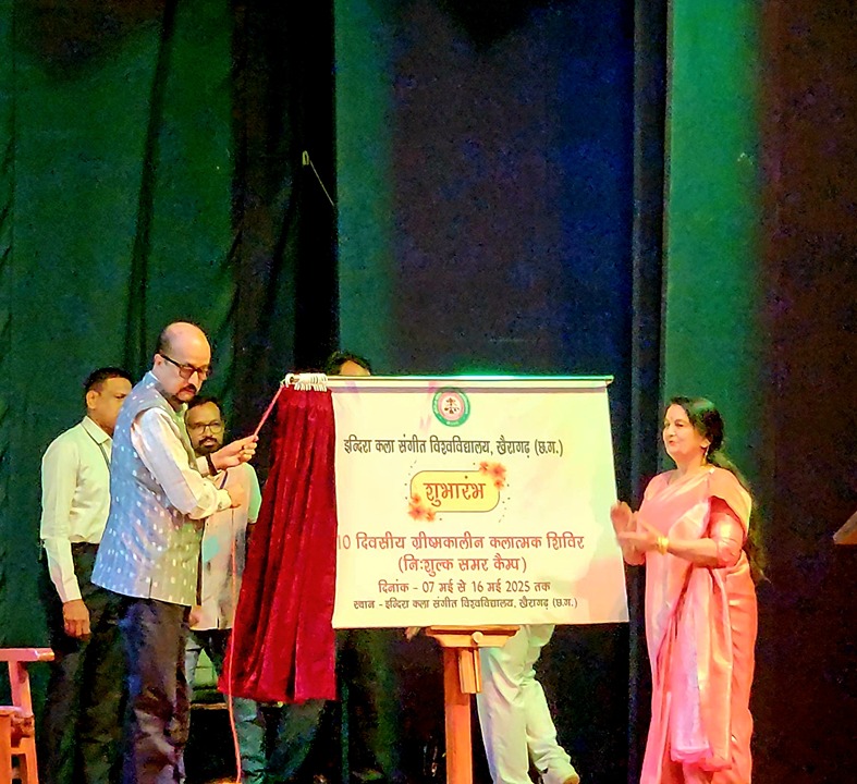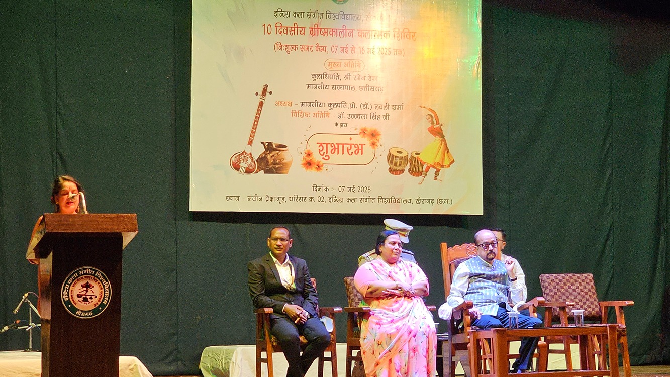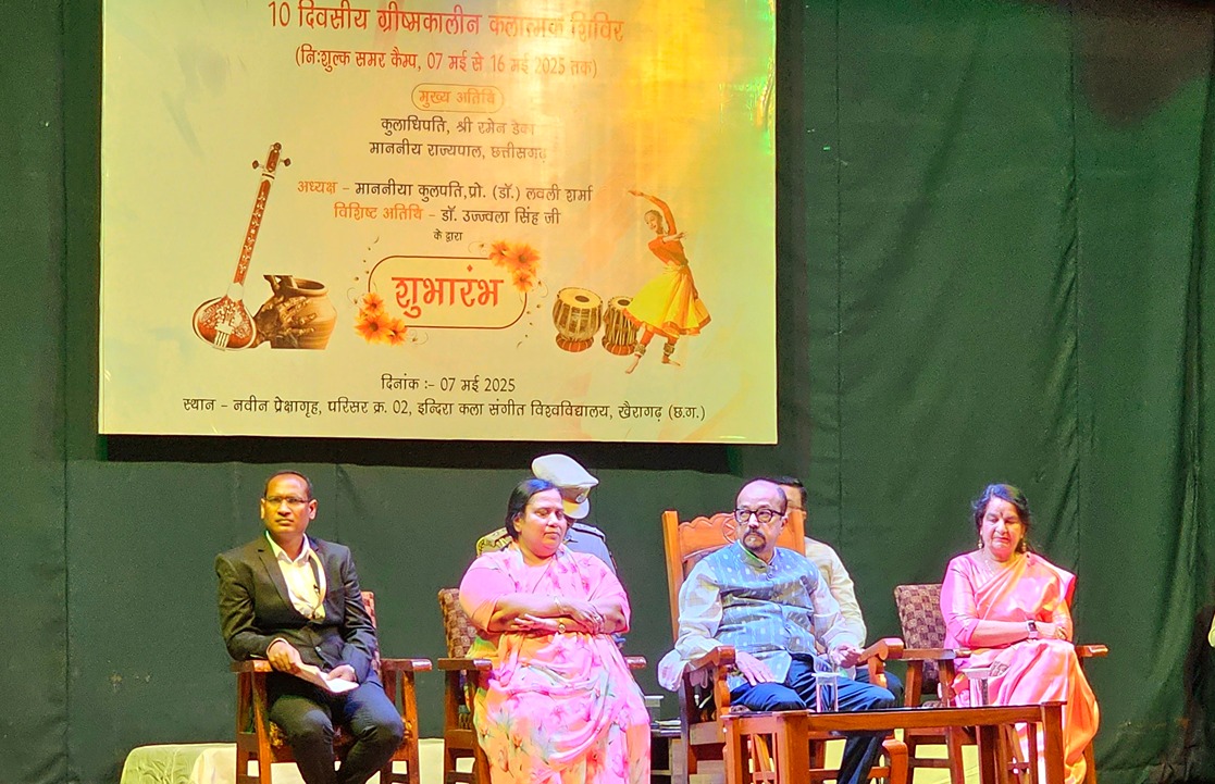 खैरागढ़. छत्तीसगढ़ के राज्यपाल रमेन डेका अपने दो दिवसीय प्रवास पर खैरागढ़ पहुंचे। उन्होंने इंदिरा कला संगीत विश्वविद्यालय में 7 मई से 16 मई 2025 तक आयोजित "ग्रीष्मकालीन कलात्मक शिविर"(निःशुल्क समर कैंप) का उद्घाटन किया।