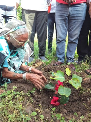 बुधवार को भाजपा नेता, विश्व हिंदू परिषद के जिला उपाध्यक्ष भागवत शरण सिंह, खैरागढ़ प्रखंड अध्यक्ष राजीव चंद्राकर, जिला पंचायत सदस्य दिनेश वर्मा, भाजपा जिलाध्यक्ष डॉ बिसेसर साहू, क्षेत्रीय जनपद सदस्य शैलेन्द्र मिश्रा, शैलेन्द्र त्रिपाठी और निर्मल त्रिवेणी महाअभियान की टीम ग्राम सर्रागोंदी पहुँची। वहां ग्रामीणों ने बताया कि गांव की 90 वर्षीय देवला बाई पटेल ने सन 2001 में श्रद्धा से घोड़ा देव मंदिर के पास उस स्थान पर पीपल का पौधा लगाया था। उन्होंने वर्षों तक उसे अपने बच्चे की तरह सींचा — हर सुबह घर से पानी लाकर वृक्ष की पूजा की। वही पौधा अब 25 वर्ष का विशाल वृक्ष बन चुका था।कटे हुए वृक्ष को देखकर देवला बाई पटेल फूट-फूटकर रो पड़ीं, उन्हें रोते देख वहां मौजूद कई ग्रामीण भी भावुक हो उठे।