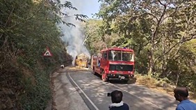 खबरों का प्रहरी न्यूज. साल्हेवारा घाटी में बड़ा हादसा: मक्के से भरी 14 चक्का ट्रक में अचानक लगी आग, फायरब्रिगेड ने समय रहते पाया काबू